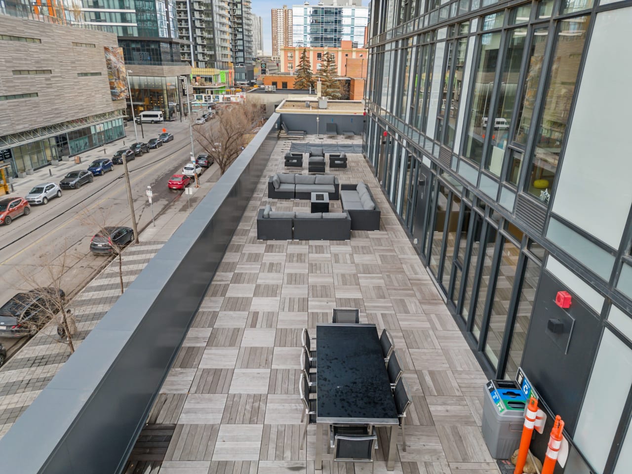 6th and Tenth Condos features a rooftop terrace, fitness centre, secure underground parking, bicycle storage, and a prime location surrounded by Beltline shops and restaurants.